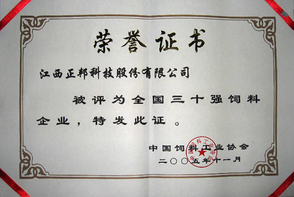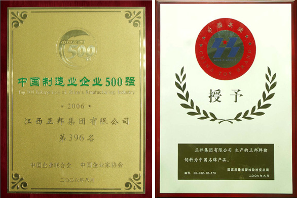 中國(guó)制造企業(yè)500強(qiáng)第396名; 正邦豬飼料成為中國(guó)名牌產(chǎn)品; 江西省原種豬場(chǎng)有限公司成立,正邦種豬育種步入專業(yè)化運(yùn)營(yíng)階段。
